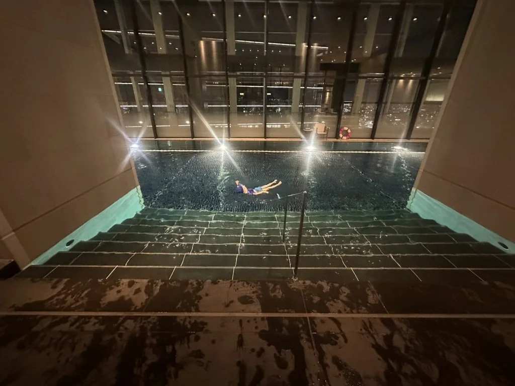 If you’re traveling with kids, this is the one area I would set expectations around. The swimming pool and changing area are shared with residential floors of the building, and the lifeguards seemed nervous about kids disturbing the adult lap swimmers who appeared to be residents. This wasn't ideal for kids wanting to play around, but the facilities themselves are beautiful. Like the rest the hotel, the floor to ceiling windows are spectacular.