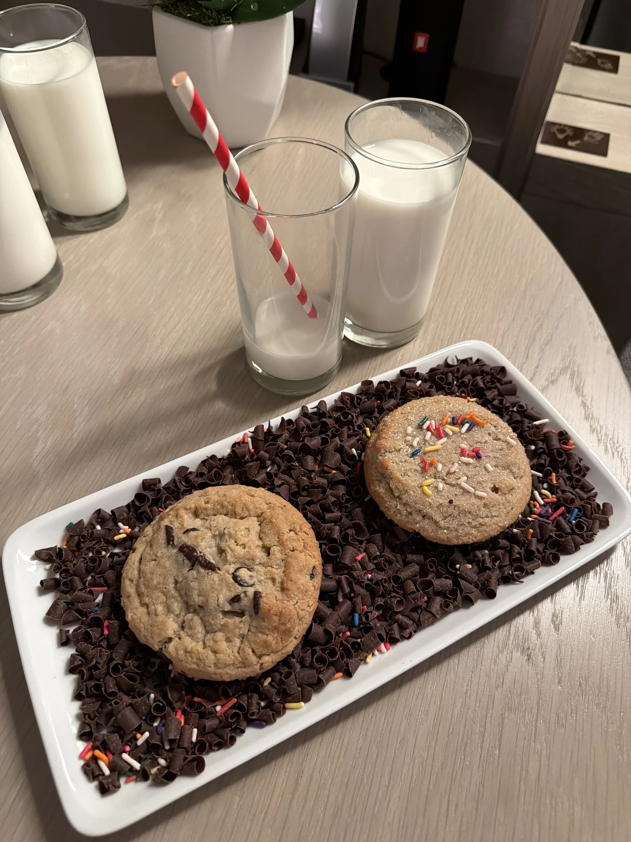 Cookies and milk the hotel sent up for a birthday!